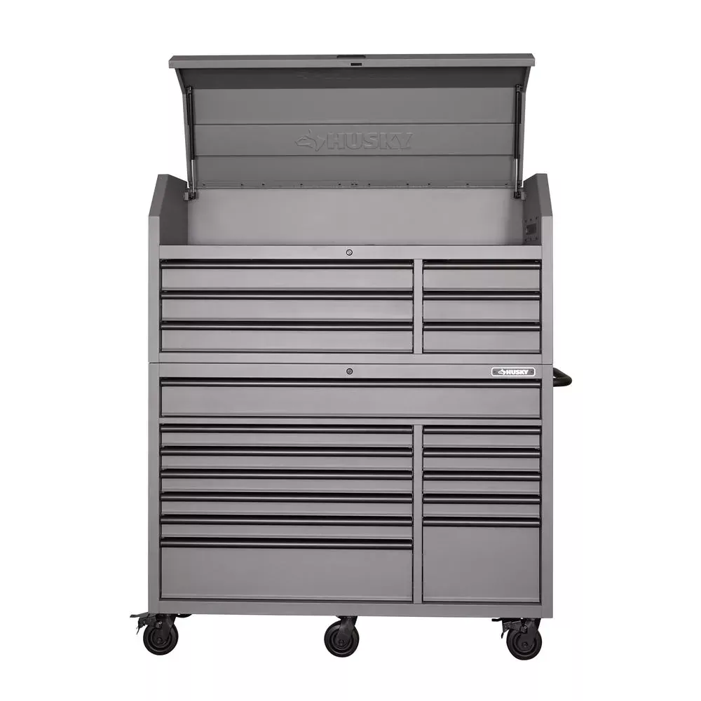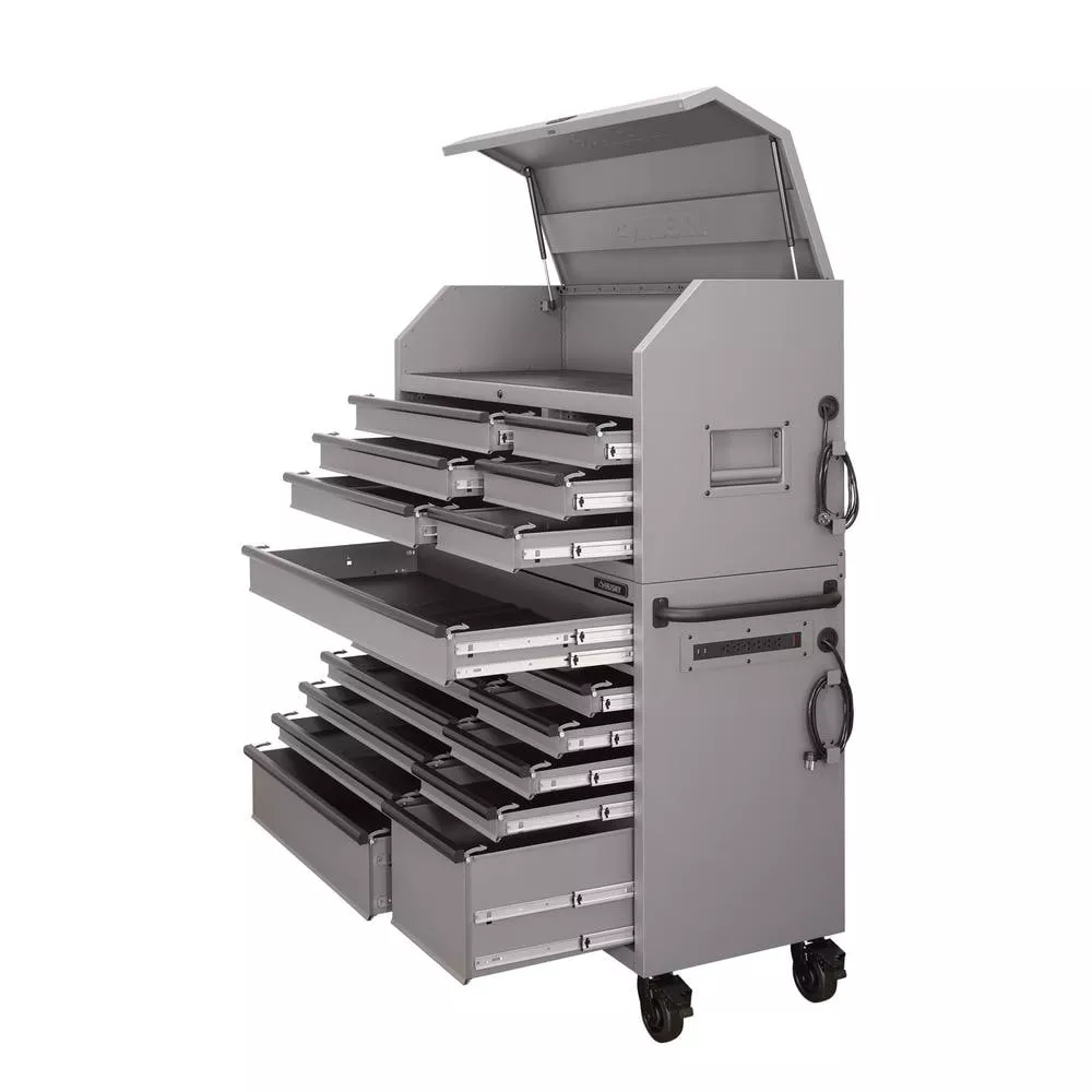 Oh Gott, 56. W 18-DRAWER COMBINATION TOOL CHEST UND CABINET SET, MATTE GRAY